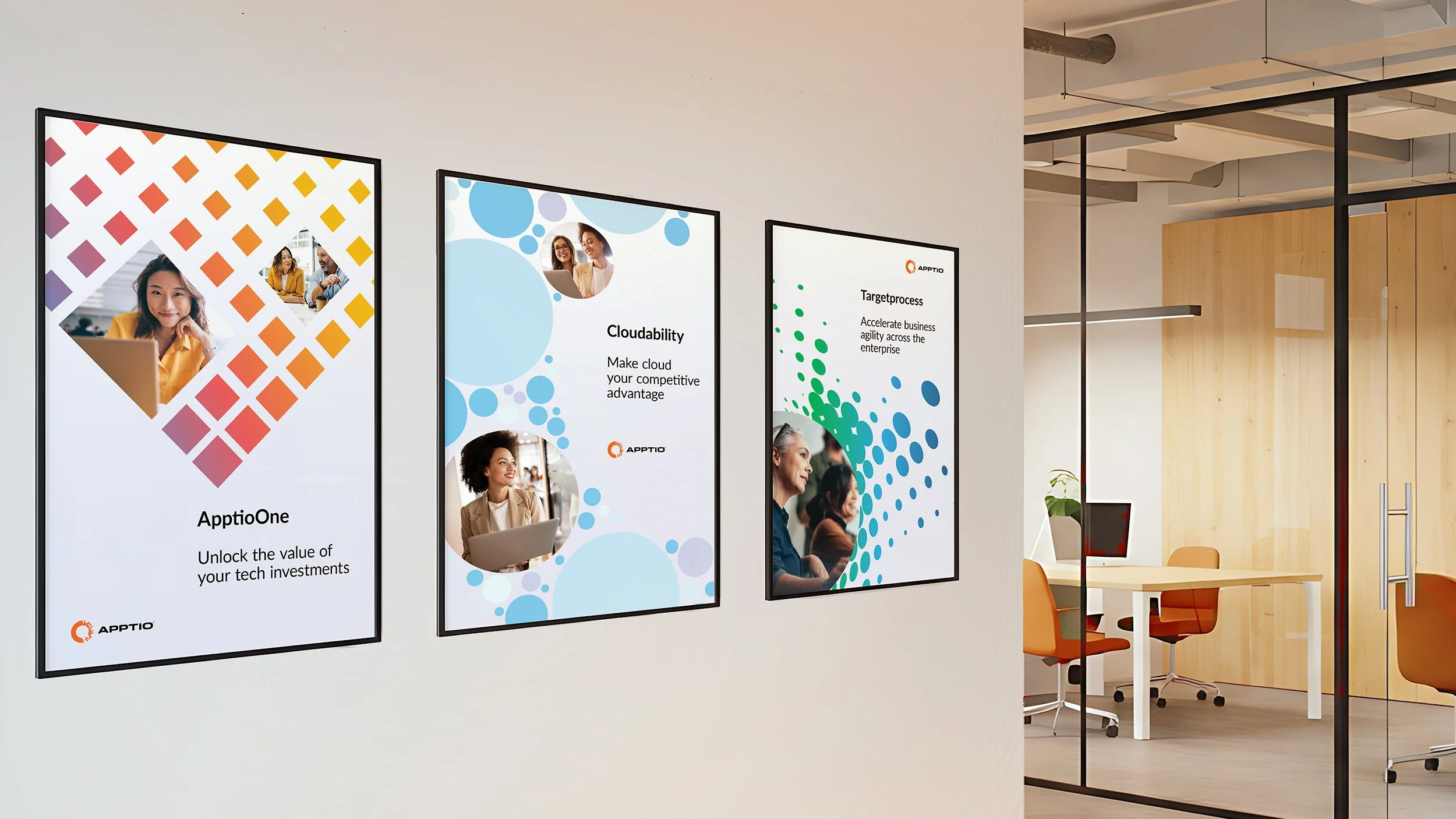 A series of posters representing Apptio and each of the company’s products was created and displayed in office meeting rooms and at events.