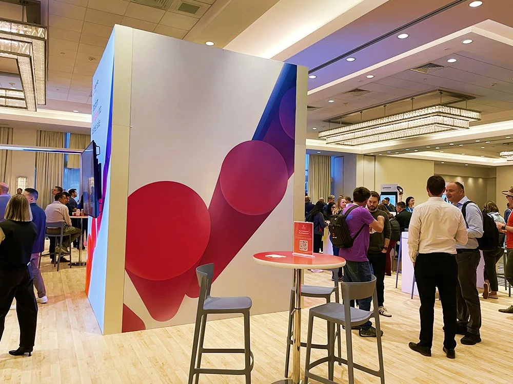 The overall booth used a combination of printed backlit visuals and digital screens to create a colorful, eye-catching booth that would grab the attention of tradeshow attendees and invite them into the space.