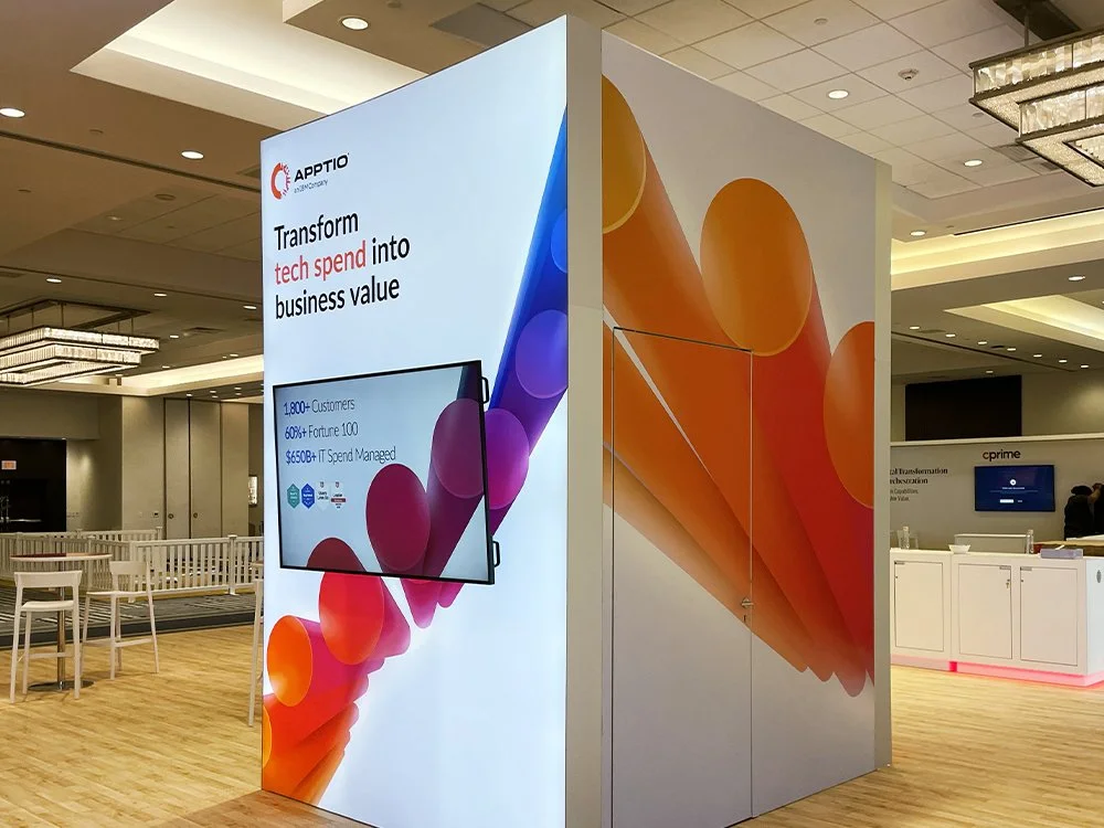 Apptio needed to create a large tradeshow booth that would embody their brand in a physical space and allow crowds of customers to easily discover and experience Apptio’s products